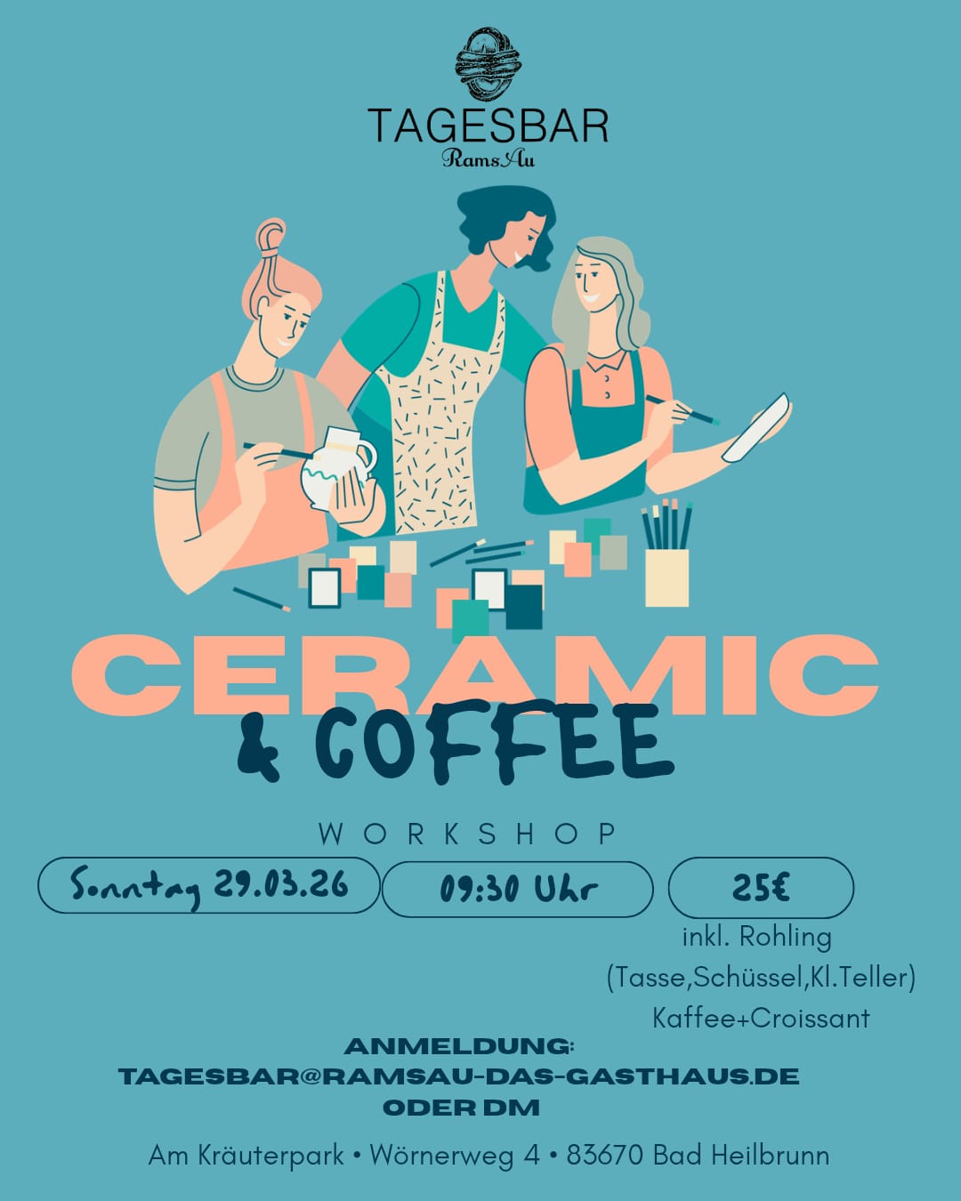 In der Tagesbar Ramsau/Bad Heilbrunn könnt Ihr zum Frühstück unsere Keramik bemalen.